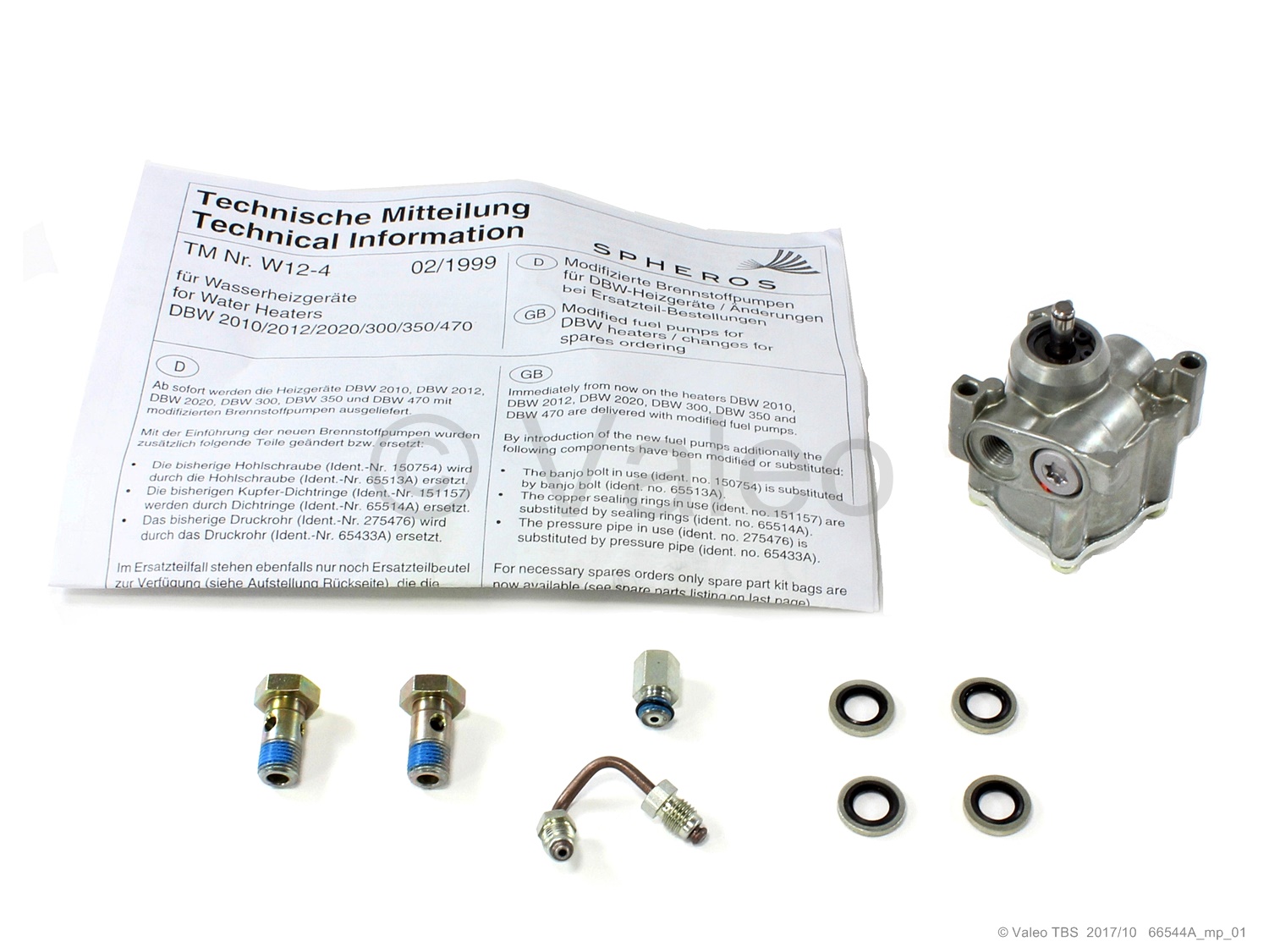 Contents: Fuel pump 65514A,2x banjo bolt, 4x gasket bolt, pressure pipe, nozzle, O-ring, Technical note W12-4
